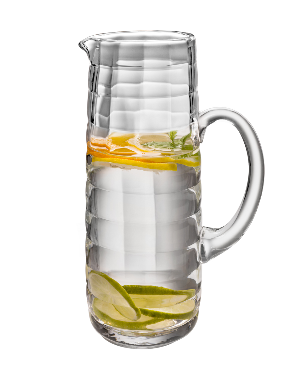 Przykładowo, orzeźwiająca lemoniada z cytryną, listkami mięty i kostkami lodu, będzie świetnie prezentować się w dzbanku wykonanym z krystalicznie przejrzystego szkła Crystalline – z ergonomiczną rączką, ułatwiającą trzymanie, a także wyprofilowanym wlewem, który pozwala napełniać szklanki bez rozlewania napoju.